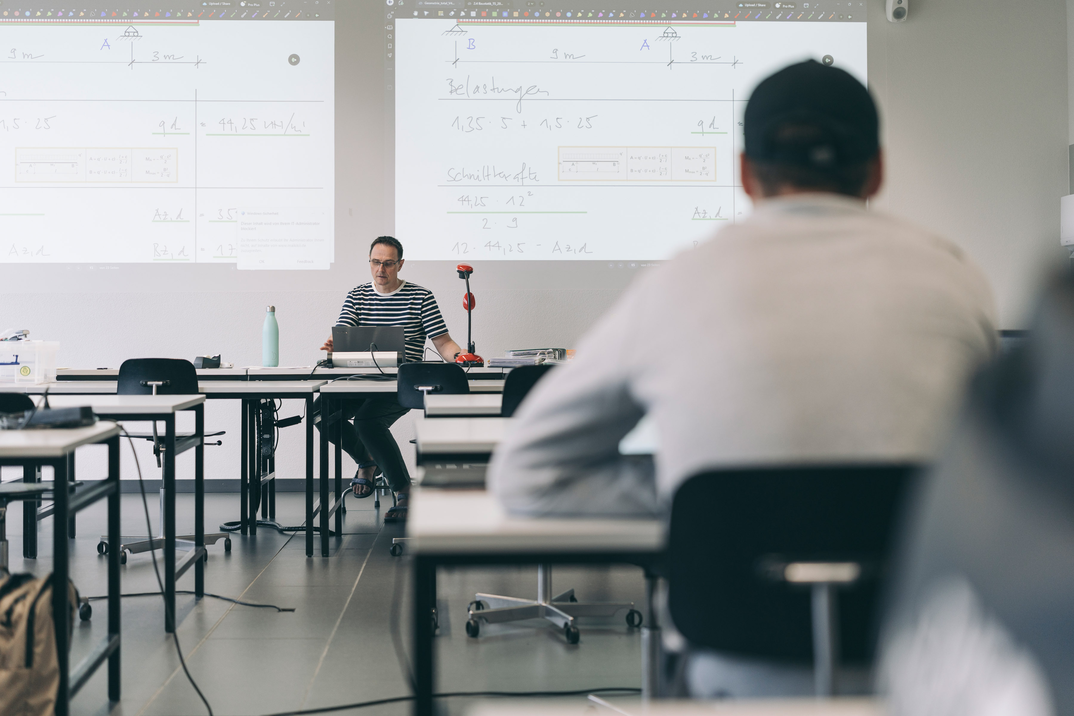 Die Bauwelt steht nie still – sie erfordert Fachwissen, Kreativität und den Mut, neue Wege zu gehen. An der Bauschule bereitest du dich auf eine Zukunft vor, in der du den Wandel aktiv mitgestaltest. Unser praxisnahes Ausbildungsangebot vermittelt nicht nur technisches Know-how, sondern fördert auch Führungsqualitäten und Handlungskompetenz. Ob Bauleitung, Planung oder Bau- und Unternehmensführung – mit uns setzt du ein starkes Fundament für deine Karriere. Du wirst Teil eines Netzwerks, das Wissen teilt, Impulse setzt und das Bauwesen weiterentwickelt. Gemeinsam schaffen wir den inspirierenden Raum für Lernen, Austausch und Fortschritt.